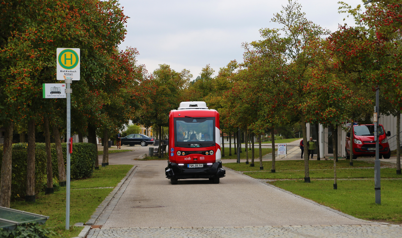 Bad Birnbach has thus written mobility history. For the first time, such a people mover is on the road in regular traffic without a driver, but with a safety operator. Up to this point, autonomously driving vehicles were only on the road on closed or private property. First, the shuttle ran for 700 m between the town centre and the thermal bath. Only one year later, the connection to the local train station followed and realised the first autonomous connection between line transport and rail transport in Germany.