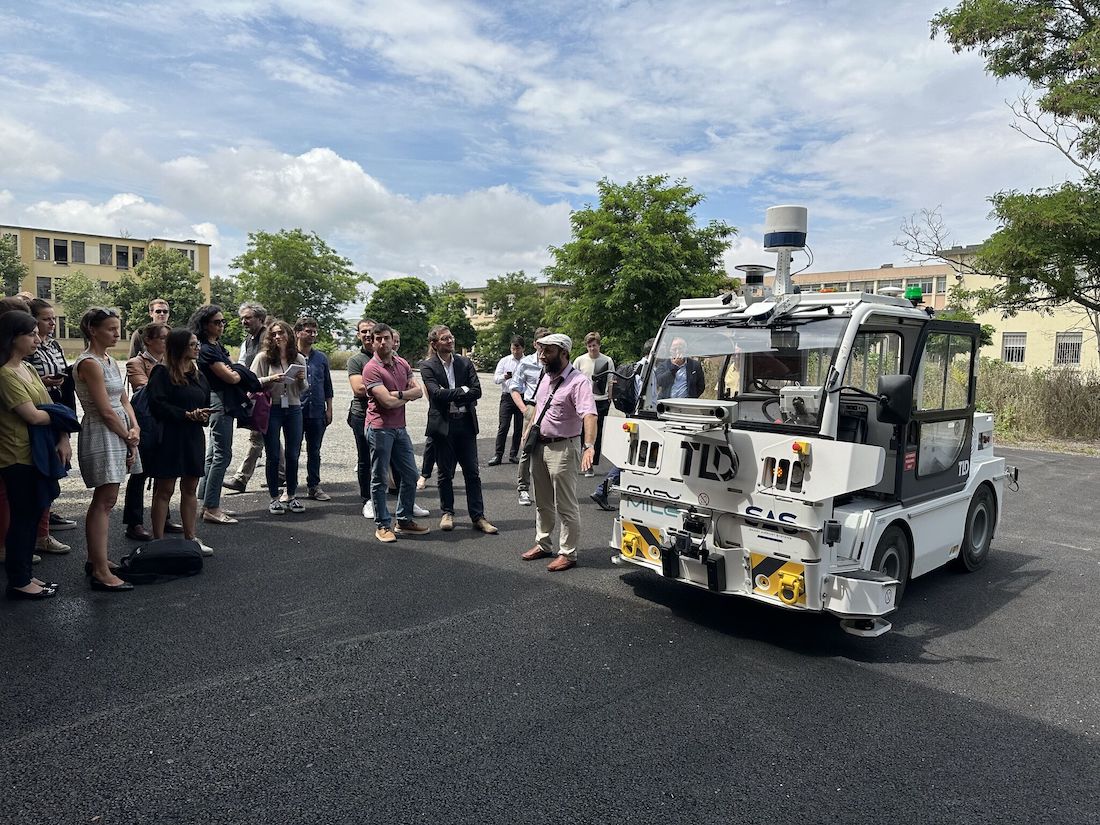 The tractor can operate in complex, outdoor environments with the ability to cross indoors, and without dedicated infrastructure. With a load capacity of 25 tons, it uses a range of sensors and cameras with real-time processing to maneuver independently and efficiently. This includes centimeter-precise localization at any moment, wide-range perception to handle obstacles and enhanced navigation including vehicle to infrastructure (V2X) communication, predictive control, and decisions at intersections and pedestrian crossings.